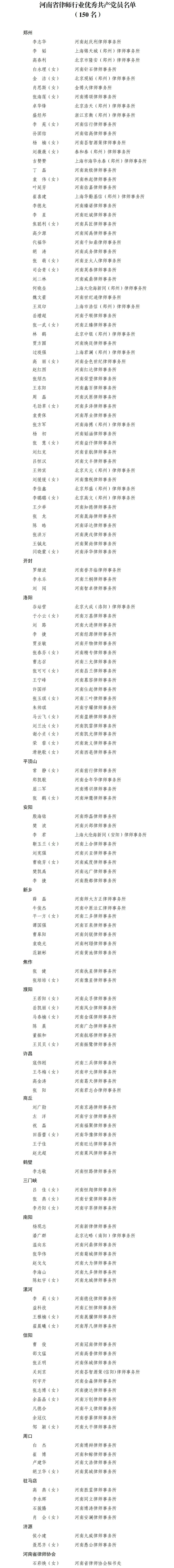 关于表彰河南省律师行业优秀共产党员
